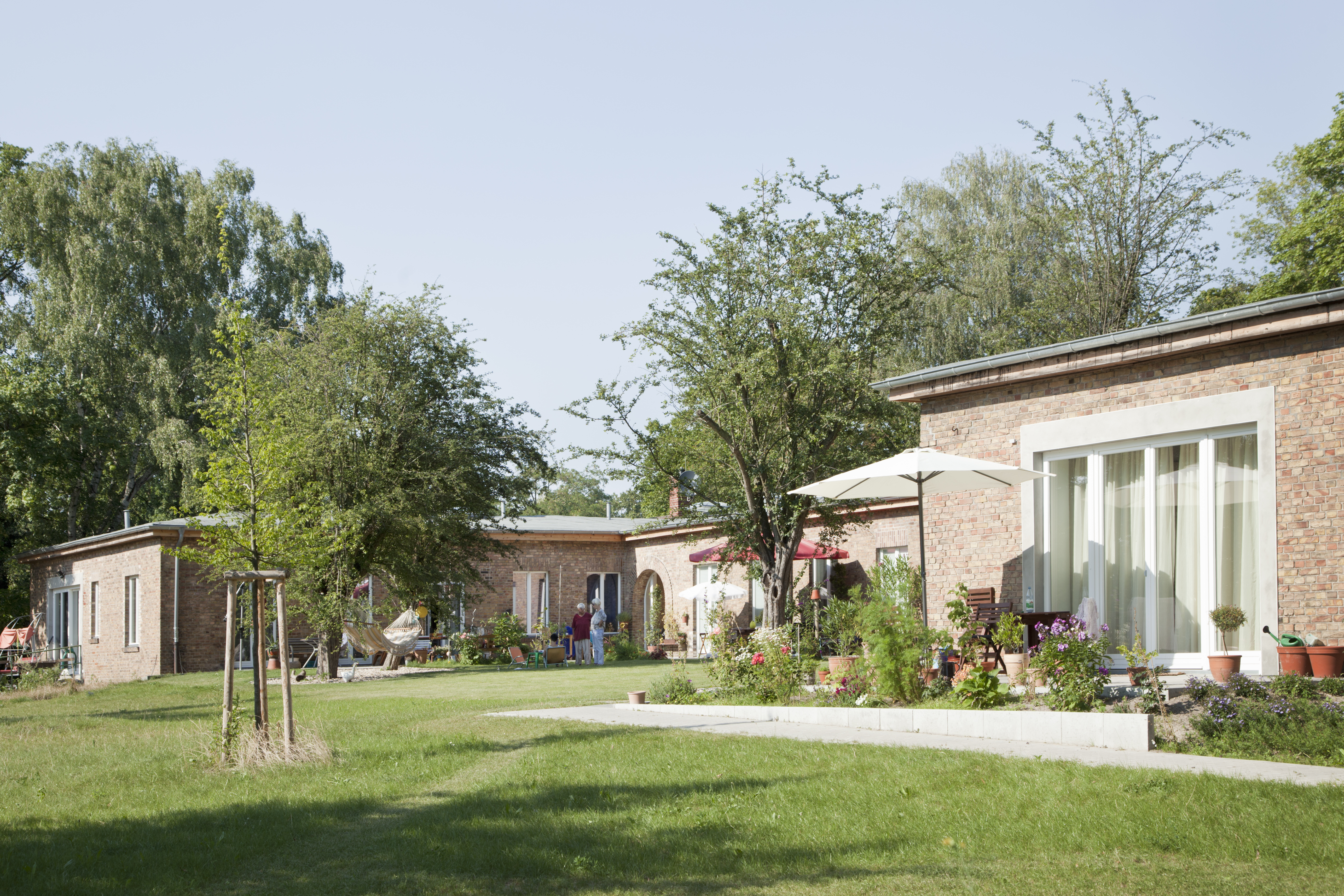 Seit dem Jahr 2007 suchten zwei Paare ein geeignetes Objekt für eine Hausgemeinschaft; im Jahr 2010 wurden sie endlich fündig. Mit Hilfe der Stiftung trias kam der Kauf einer ehemaligen Berufsschule und dem dazugehörigen Werkstattgebäude zustande, in dessen Anschluss trias mit der Vierer-GbR einen Erbpachtvertrag auf 99 Jahre abschloss. Wegen Unstimmigkeiten in der Gruppe, mussten das Grundstück und die Häuser später in einem schwierigen Verfahren aufgeteilt werden. Im Jahr 2012 übernahm die SelbstBau eG den Bereich mit dem Werkstattgebäude, in dem im Jahr 2013 begonnen wurde zu bauen. Dabei räumten die Architekt*innen viel Mitspracherecht ein und stellten ihr Büro für Besprechungen der zukünftigen Hausgemeinschaft zur Verfügung. Ein Jahr später wurden fast alle Wohnungen bezogen, zwei blieben jedoch länger leer, da es sich aufgrund der Insellage und des noch bestehenden Fluglärms als schwierig erwies, Familien mit Kindern für das Projekt zu gewinnen. Im April 2015 waren endlich alle Wohnungen belegt. Von Beginn an fanden regelmäßige Treffen und sonntägliches Frühstück im großen Gemeinschaftsraum statt. Der Garten wird gemeinsam angelegt, gepflegt und häufig genutzt. Die Terrassen vor den Wohnungen gehen fließend ineinander über und fördern somit das gemeinschaftliche Miteinander. Da der Bau nicht unter Denkmalschutz steht, konnte er optimal verändert werden, so dass das Areal nun einen nahezu mediterranen Anblick bietet.